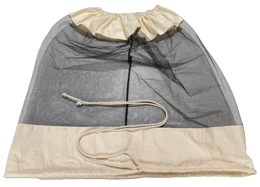 This veil has calico top and bottom for greater strength, and a tie cord for around your waist.