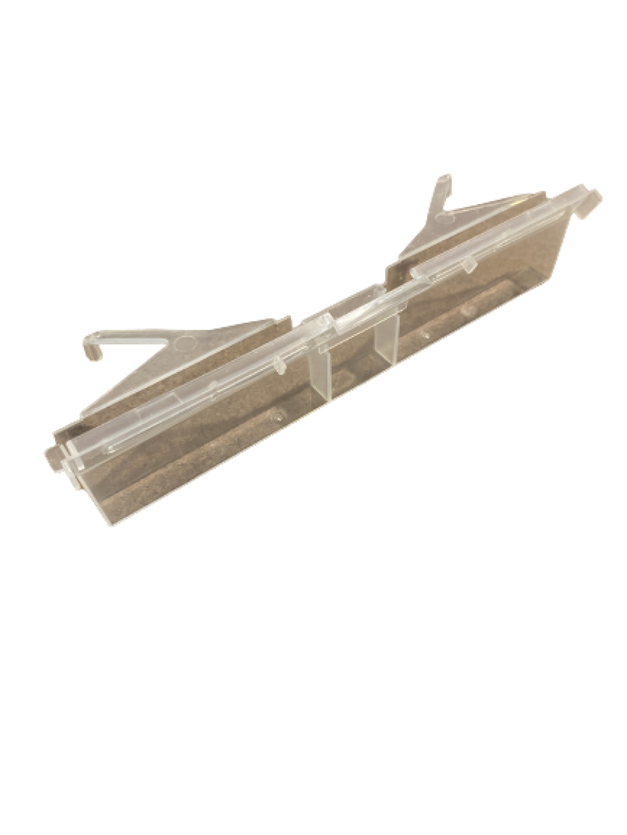 A beetle trap that sits between the frames with a flip up lid. It can be used with cooking oil or Diatomaceous Earth powder.
