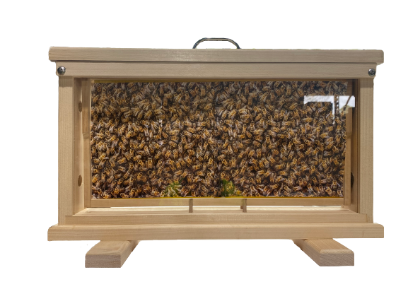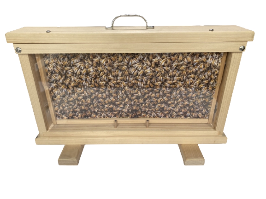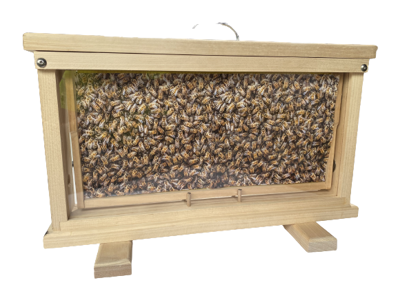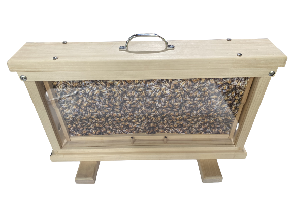 The standard single frame observation hive. This comes assembled with 2 sheets of perspex. It is used to display one frame of bees for a day and then returned to the hive.