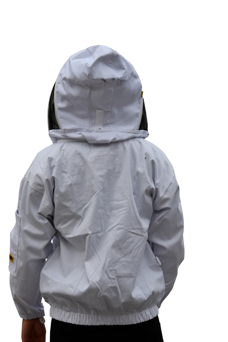 Fencing hood: Traditional and older style of hood. This hood can come back closer to the nose, but it does provide better peripheral vision when working the hive.