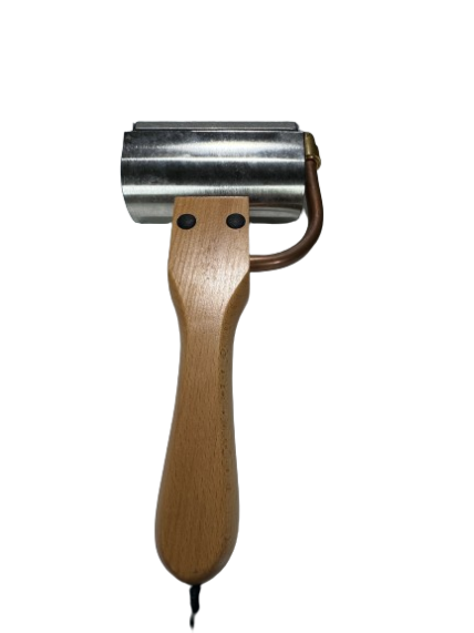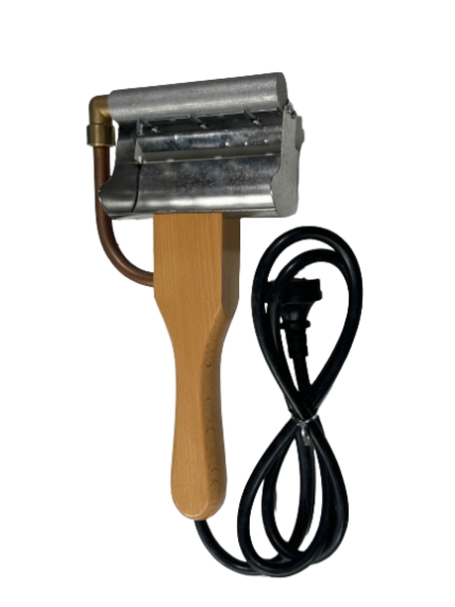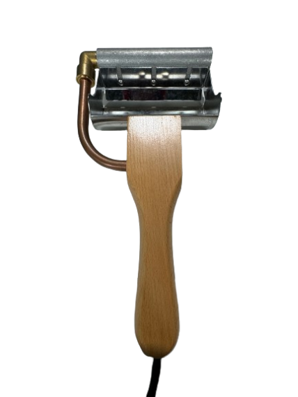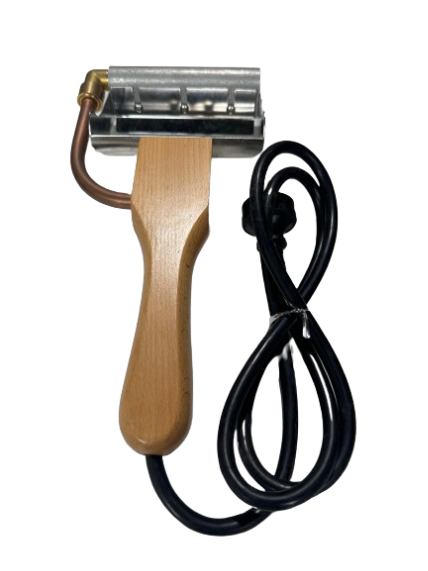 This uncapping plane has a copper cutting blade that heats up and is adjustable to the depth of cut.