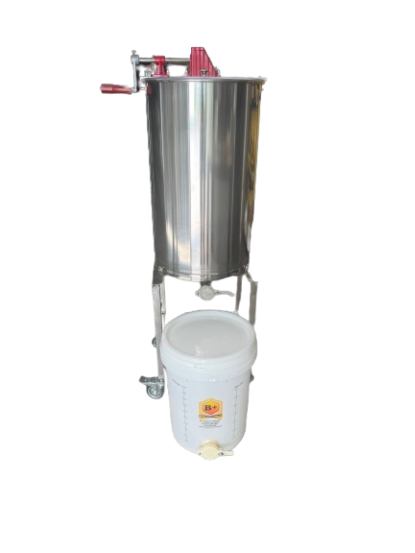 These are ideal for the people that have a small number of hives. With the side crank handle extracting or the spinning out of honey has become much easier than the older top winder models. These smaller models are only available in Lateral design and are very efficient. All extractors are made of stainless steel including the mobile stands with two lockable castors. This enables you two wheel it outside for cleaning. Simply hose out and allow to dry. All extractors are supplied with a bucket with honey gate.