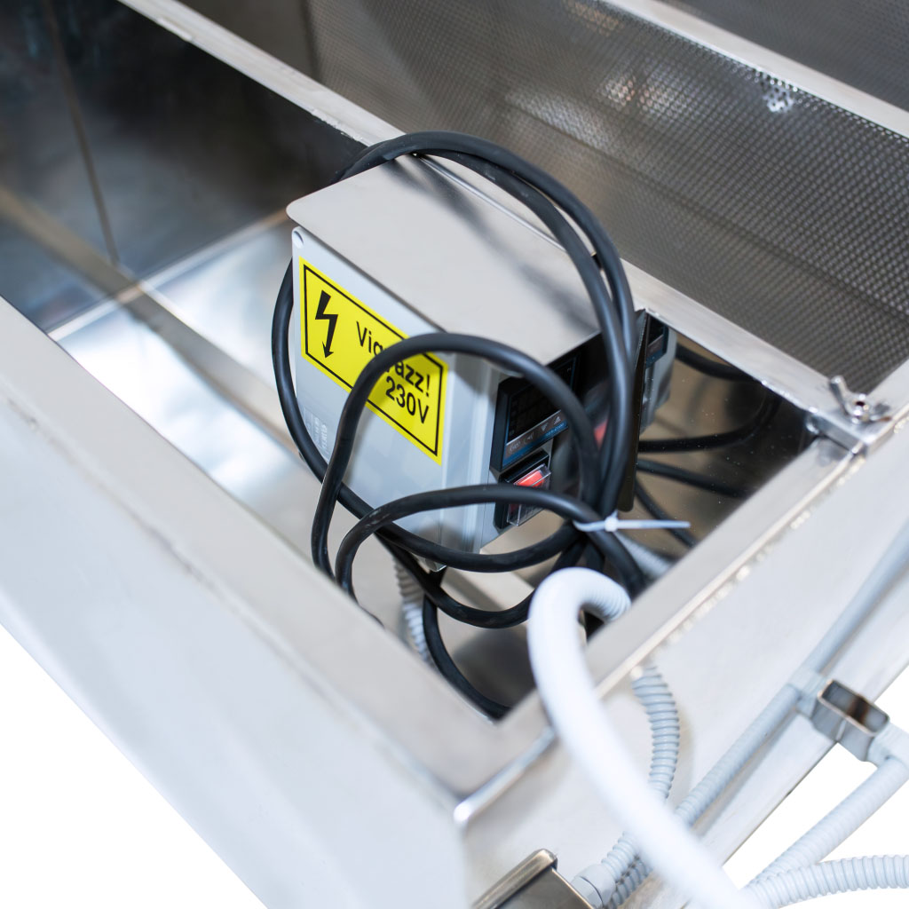 The SZ-KAD-F Honey Sump is a robust and efficient solution for honey processing. With a 160-litre capacity, it features five separate ventricles divided by four strainers for optimal filtration. Tubes at each end allow easy honey entry, while a central drain enables smooth pumping. The 1.1 kW heating system maintains consistent temperatures, ensuring efficient honey flow and processing. This unit is ideal for beekeepers seeking reliable, high-capacity honey handling equipment.
